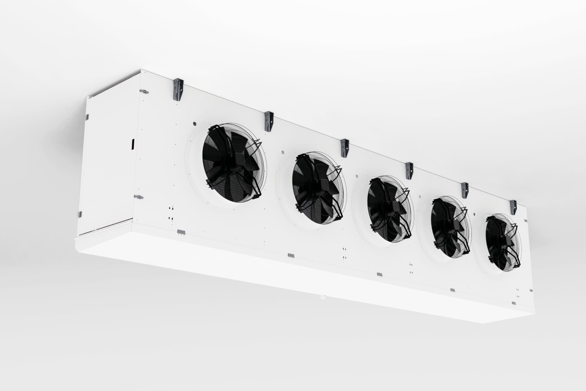 Geräuscharmen Ventilatoren zur Gewährleistung eines niedrigen Schallpegels in Verarbeitungsräumen.Wartungsfähige Kühleinheiten aus rostfreiem Stahl, die widerstandsfähig und leicht zu desinfizieren sind.