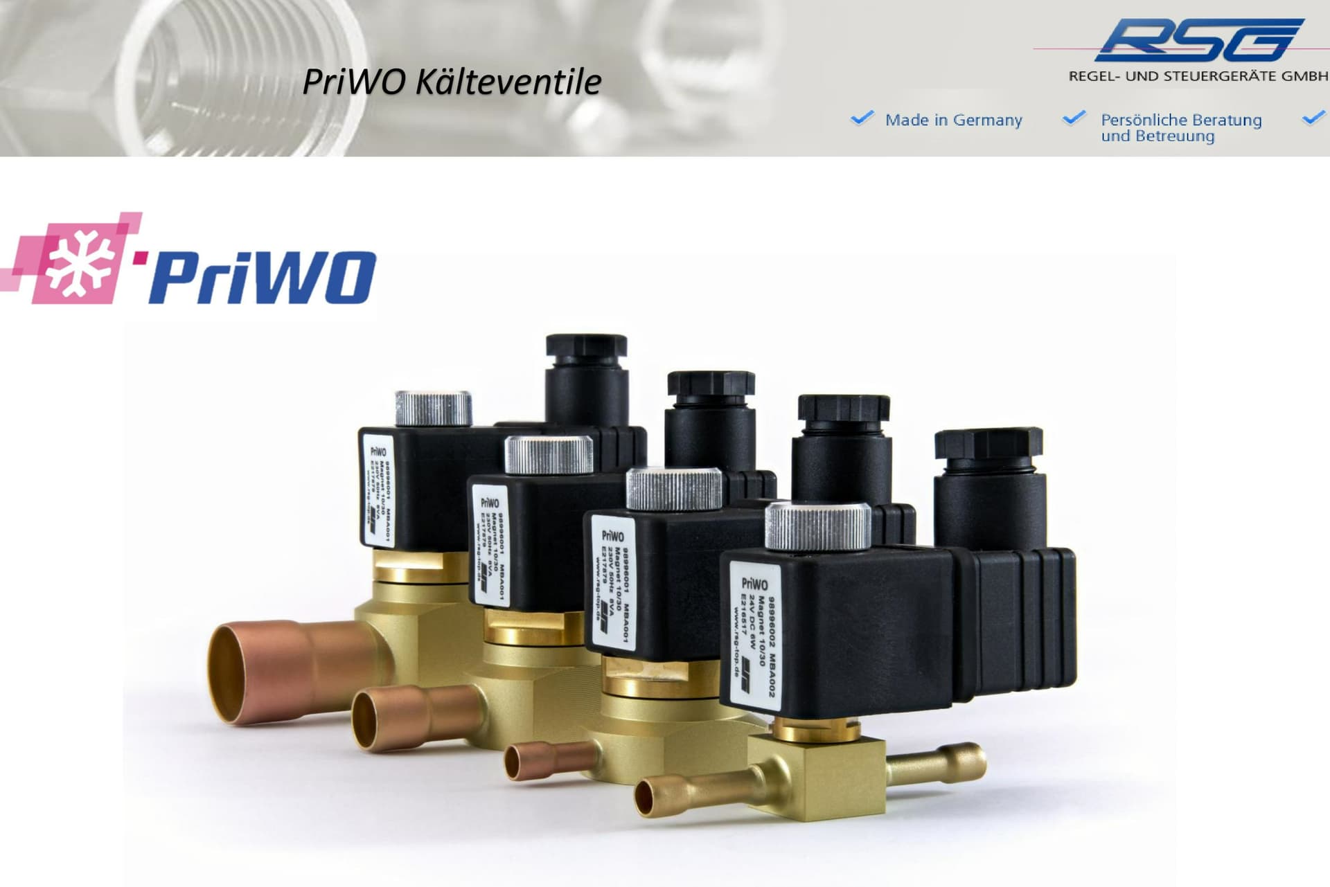 Die RSG produziert und vertreibt das ORIGINAL-Kälteventil nach dem einzigartigen Prinzip und schreibt damit die seit über 27 Jahren andauernde Erfolgsgeschichte des PRIWO-Kälteventils fort. Unsere Kälteventile werden vor allem in folgenden Branchen und Anwendungsbereichen eingesetzt: Lebensmitteltransport, Laboranwendungen, Fahrzeugklimatisierung, Gefriertruhen und Klimaschränke.