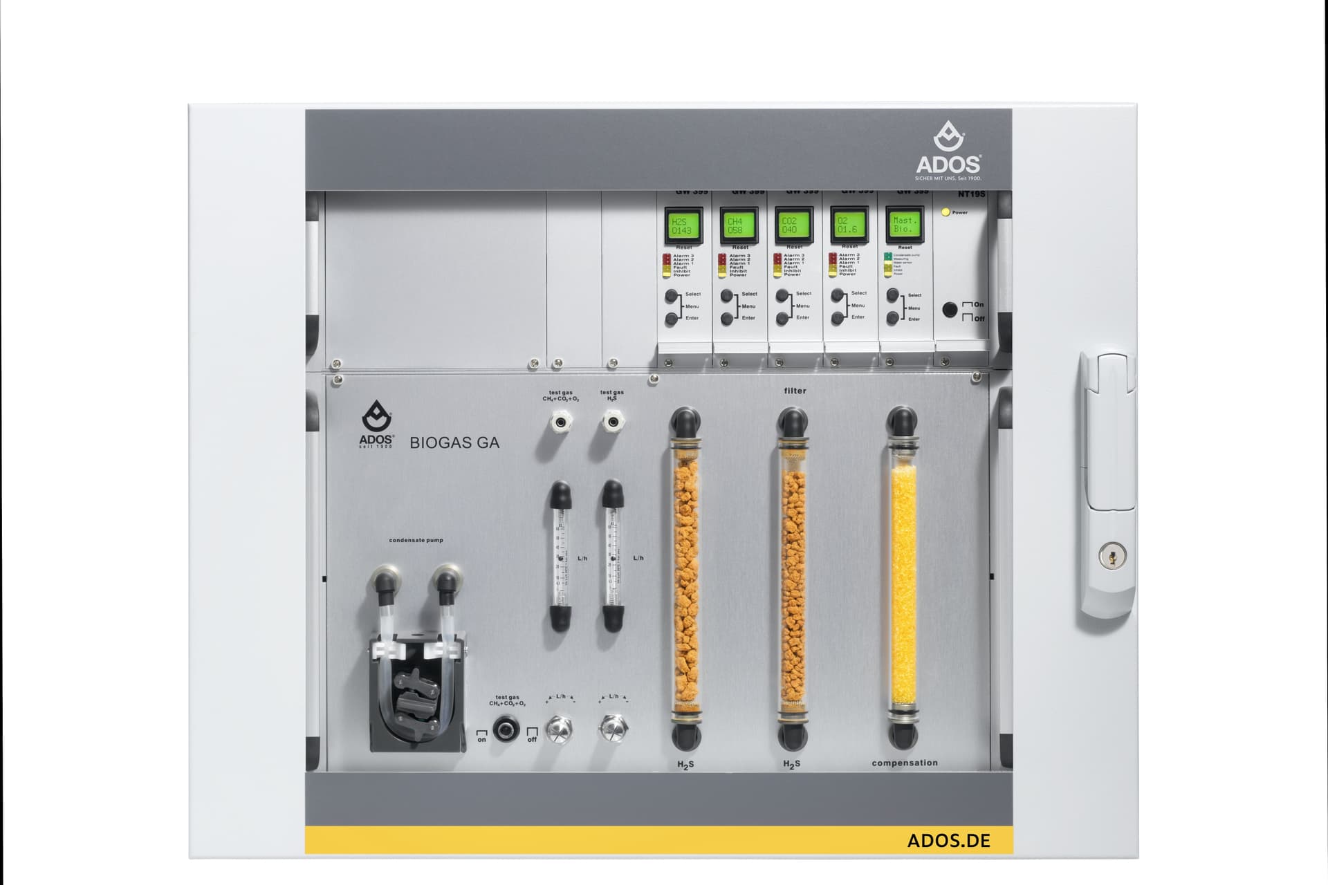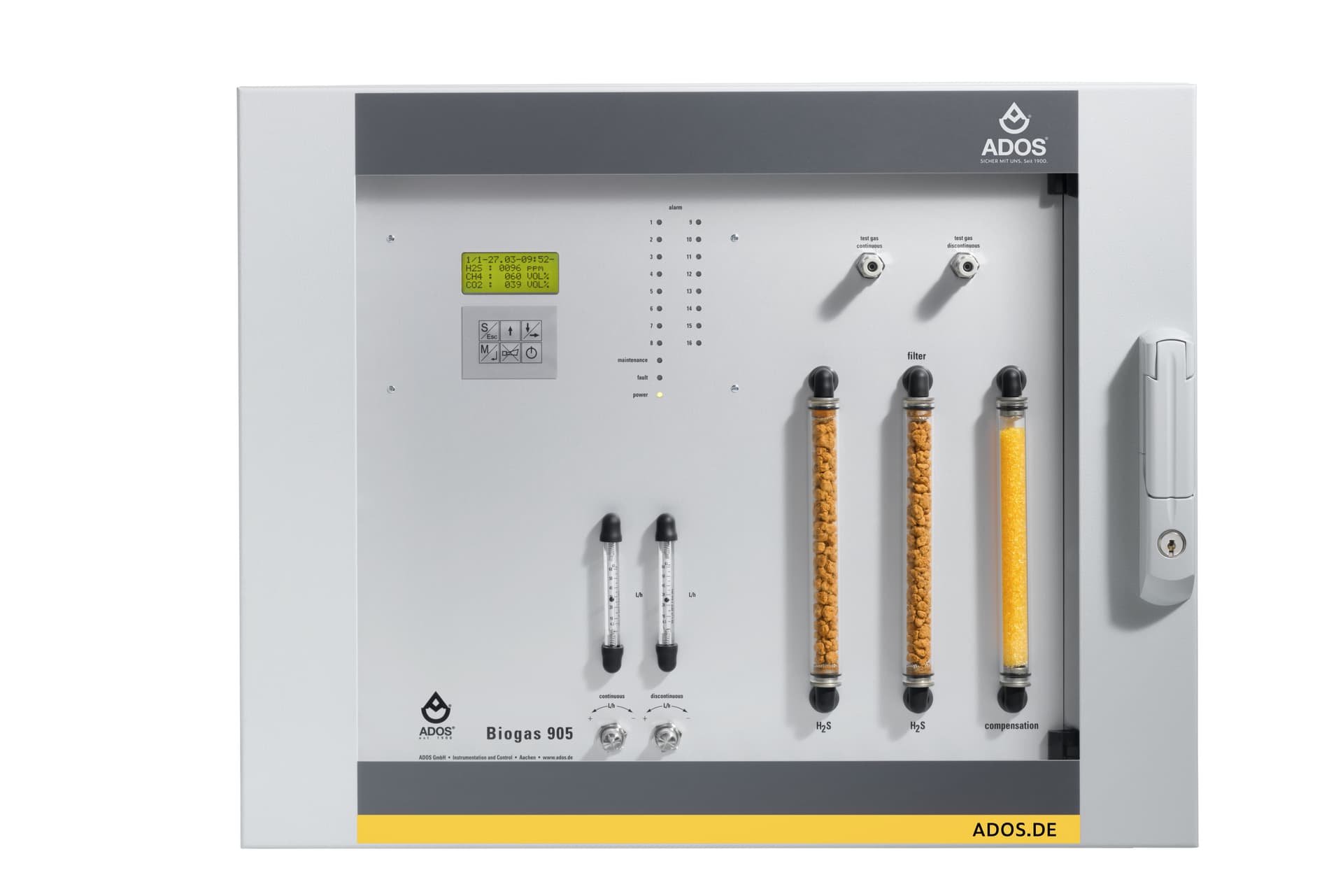 Messbereich: CO2: 0-50 Vol.%;CH4: 0-100 Vol.%;O2: 0-5 Vol% ... 0-25 Vol%;H2: 0-2 Vol. %; H2S: 0-50 ppm … 0-9.999 ppm;weitere Messbereiche auf AnfrageMesskomponenten: CH4, CO2, O2 (kontinuierliche Messung möglich);H2S, H2 (nur diskontinuierliche Messung möglich)Überwachung mehrer ...
