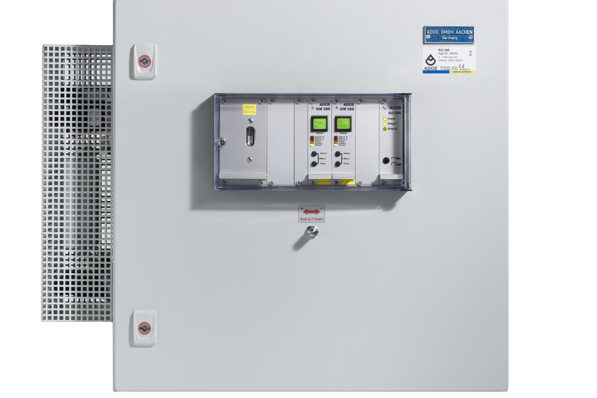 Der Biogas-Analysator 401 überwacht einstellbar kontinuierlich oder diskontinuierlich das Biogas auf die Gaskomponenten hin und optional die Umgebungsluft, wobei er frühzeitig vor gesundheitsgefährdenden, explosionsfähigen sowie nichtbrennbaren Gasen und Dämpfen warnt.Messprinzip: elektrochemische Reaktion, Infrarotanalyse