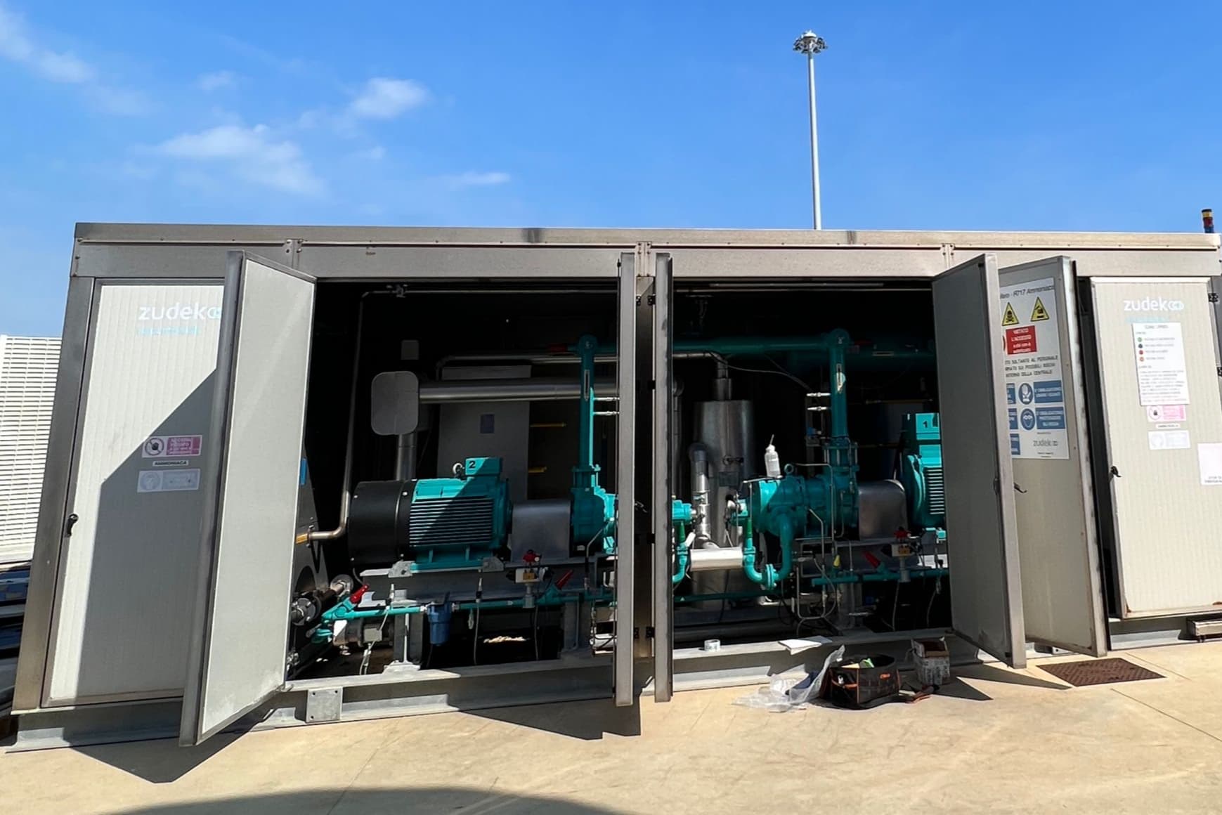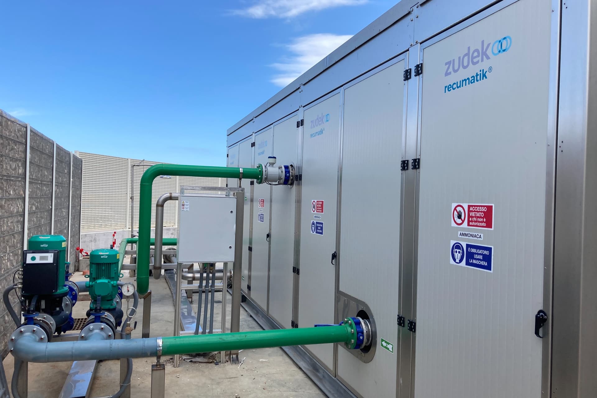 Recumatik ist die Hochtemperatur-Wärmepumpe von Zudek, entwickelt, um das thermodynamische Potenzial von Ammoniak als natürlichem Kältemittel mit herausragender Leistung vollständig auszuschöpfen. Ausgestattet mit Hubkolben- oder Schraubenkompressoren, die von IE4‑Motoren mit Inverterregelung angetrieben werden, gewährleistet Recumatik eine präzise Modulation und hohe Effizienz über einen breiten Betriebsbereich.